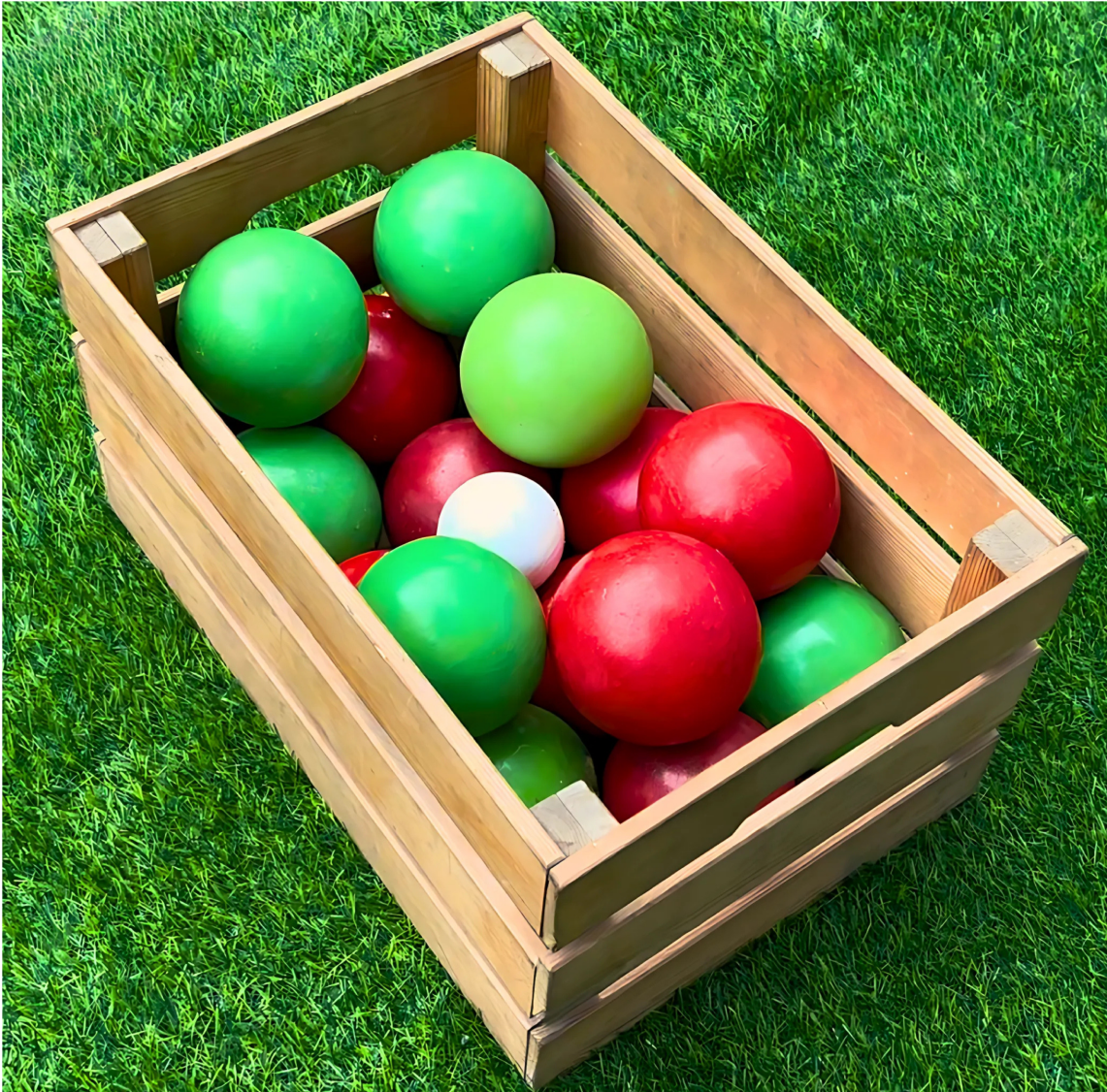 Strategic outdoor game tossing balls closest to a smaller target ball.