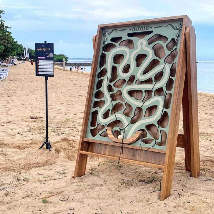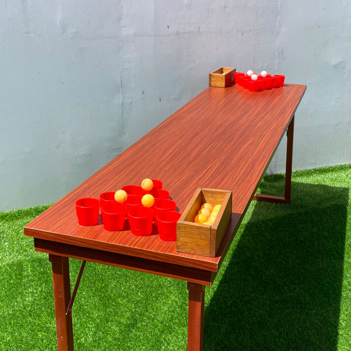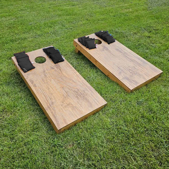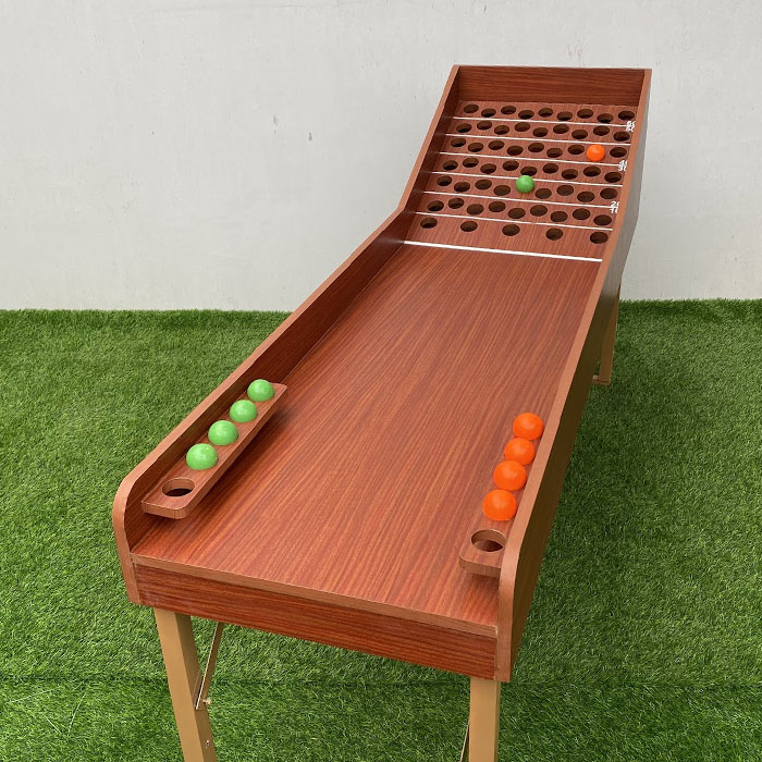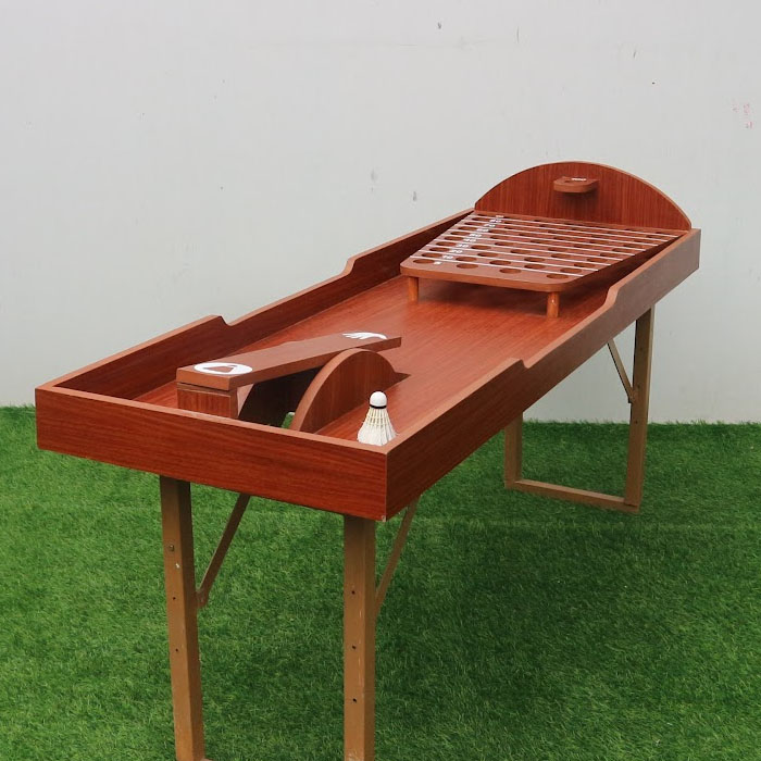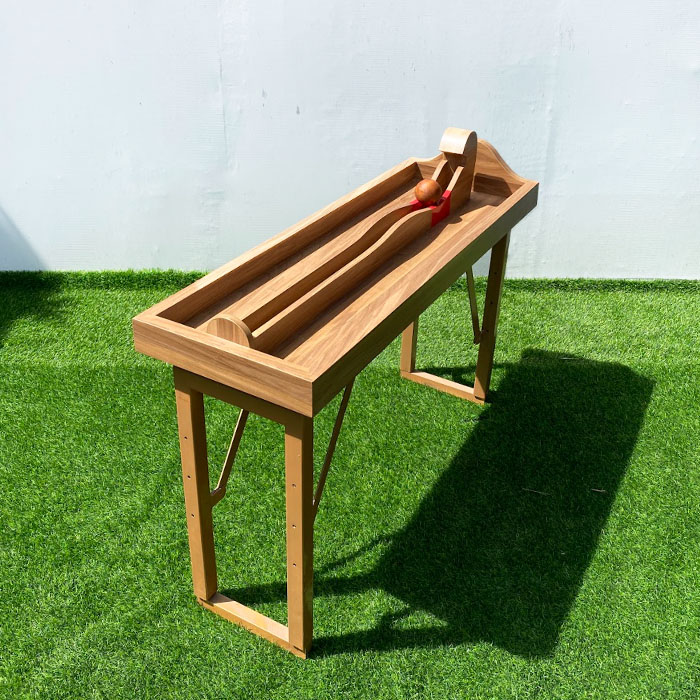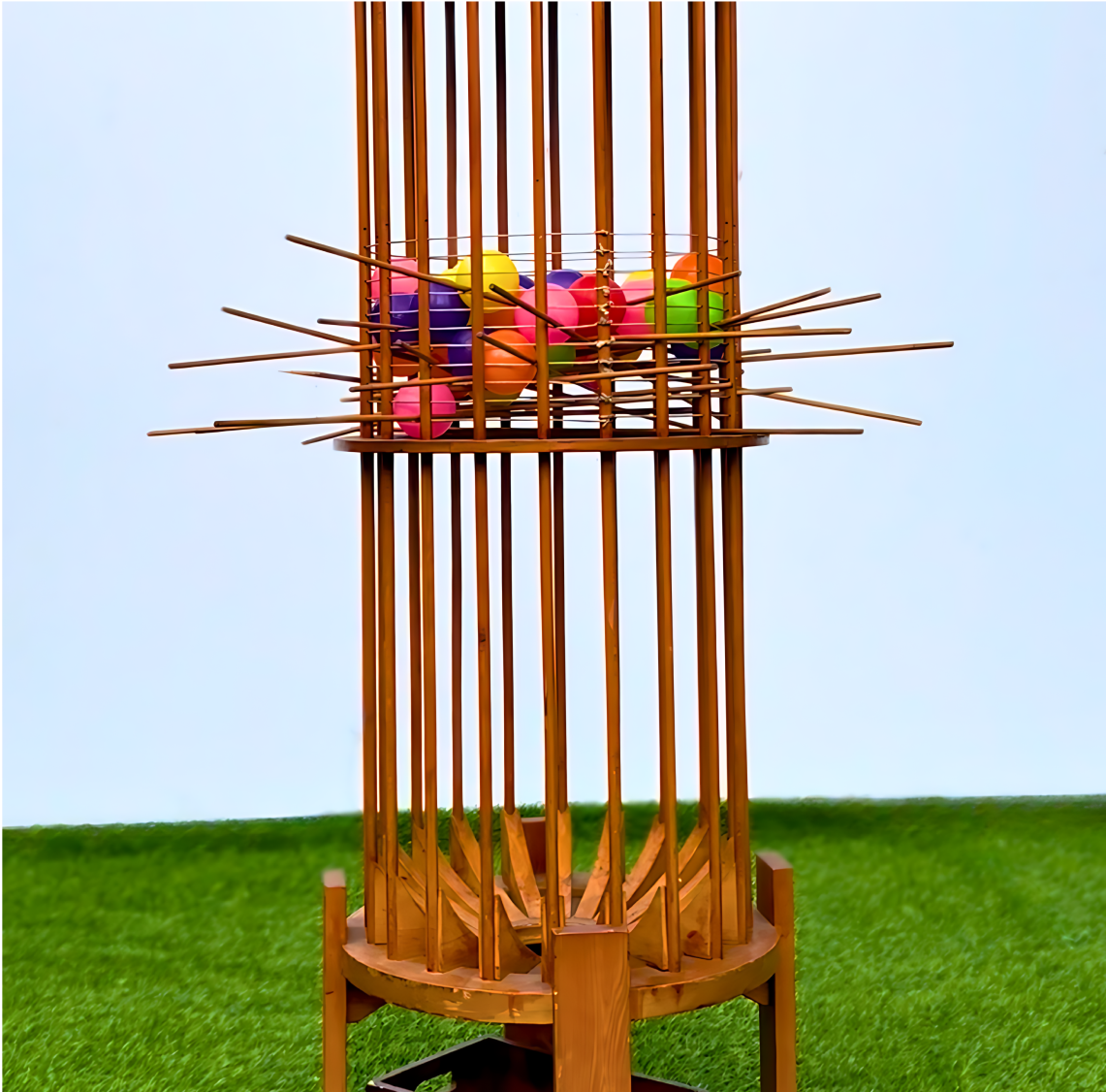 Oversized Jenga stacking game, challenging balance and strategy for groups.