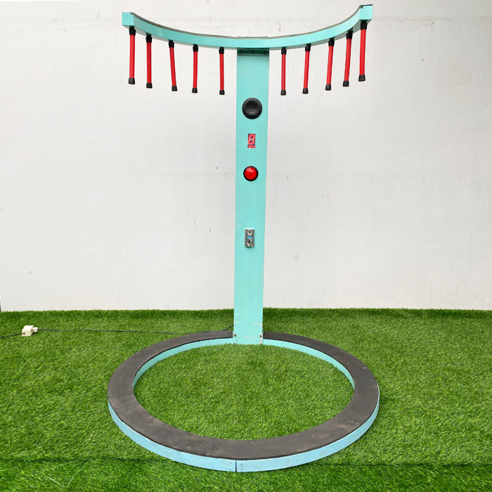 Arcade game shooting shuttlecocks with a mechanism for quick play.